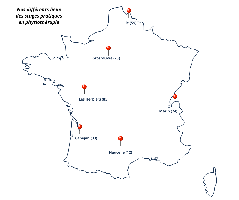 Les stages de physiothérapie sont réalisés dans différents centres de physiothérapie (cf carte ci-dessous).