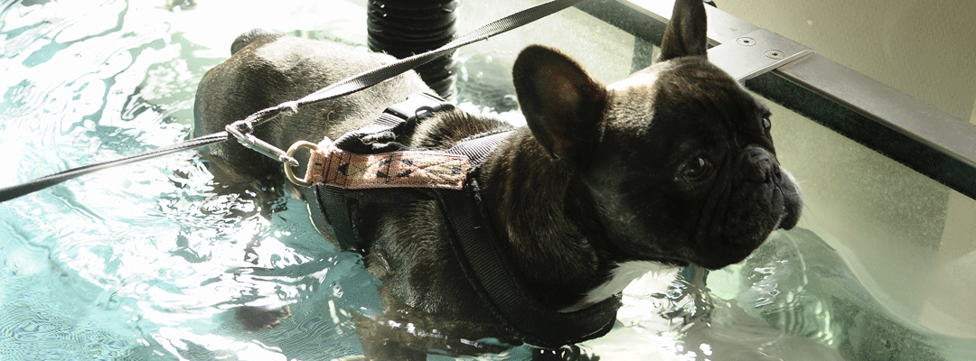Les exercices physiques (hydrothérapie, marche sur tapis roulant…) sont monitorés par le vétérinaire physiothérapeute.