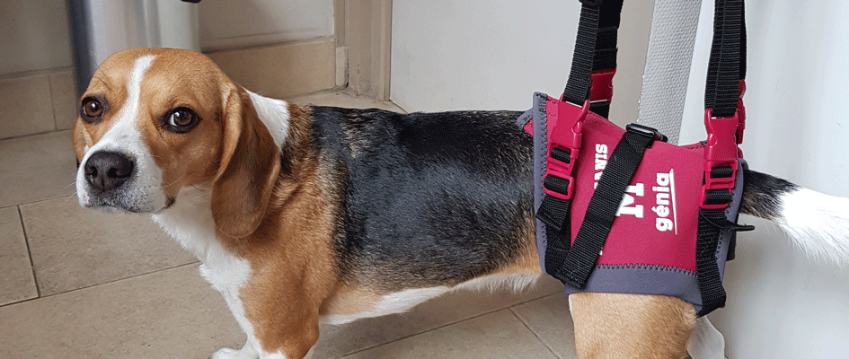 Dans ces moments-là, il est également possible avec des harnais de soutien, des chariots ou encore des orthèses de maintien du membre, d’améliorer la qualité de vie de l’animal et le confort du propriétaire dans la gestion quotidienne de son compagnon.